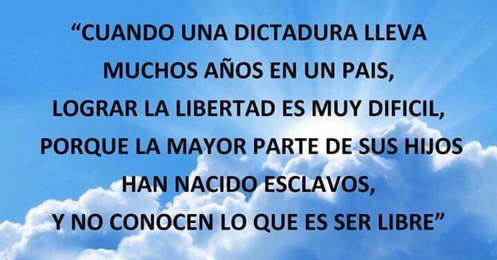 Y ojo que conozco a muchos que han salido de Cuba pero todavía no conocen el valor de ser libres. Conozco a más que siguen practicando el conmigo o contra mí y conozco a otros que darían lo que no tienen por seguir siendo esclavos.